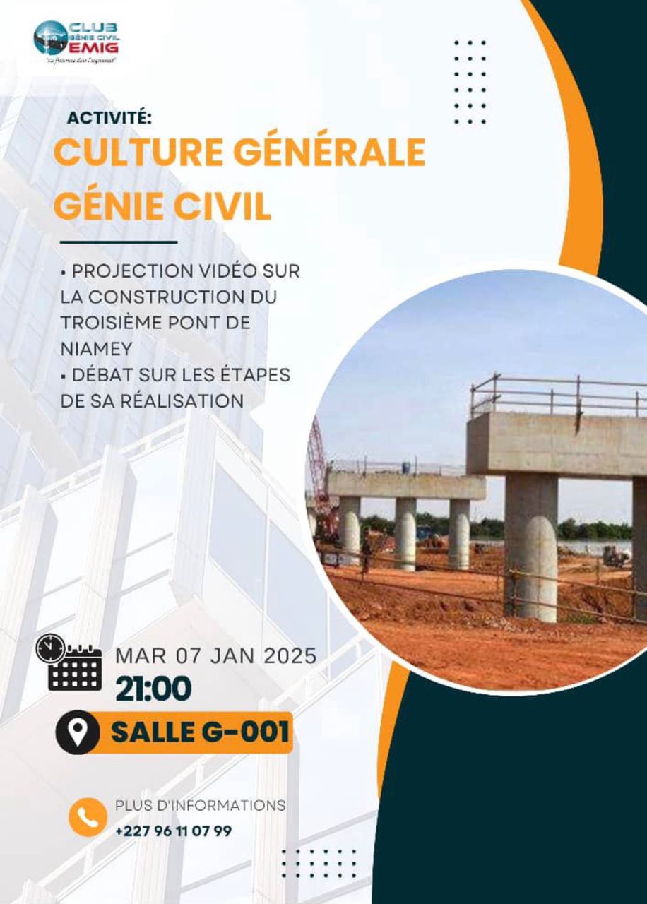 Le Club Génie Civil de l’EMIG organise une activité de culture générale en génie civil portant sur la construction du troisième pont de Niamey. Cette ...