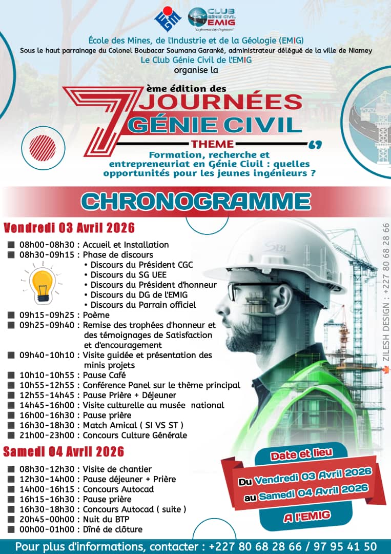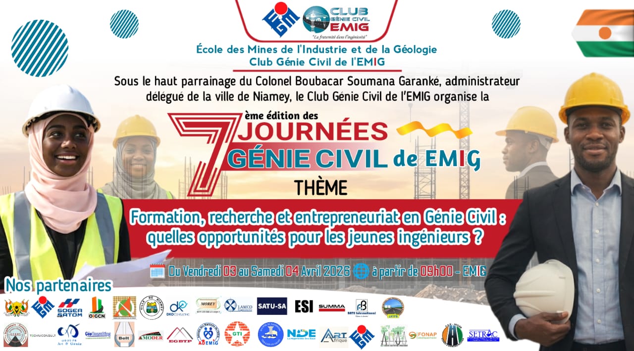 📢 **Journée Génie Civil EMIG – 3 & 4 avril** Le Club Génie Civil EMIG, via son Secrétaire chargé à la Communication et aux Affaires Extérieures, vo...